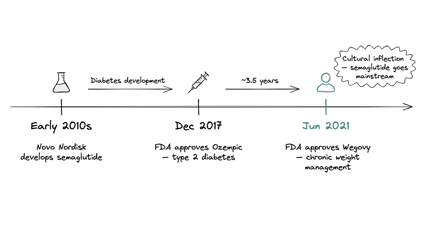 The second approval is what pushed semaglutide into mainstream awareness. The diabetes framing never landed with the general public. The weight-loss one did, fast.